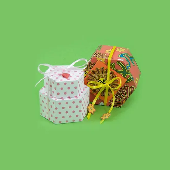 Hexagon box packaging is the ideal packaging for gift products with unusual dimensions. These custom boxes have a lot of functional space, which is ideal for packaging various products, including cosmetics, personalized gifts, packaged food, and most other retail items. Half Price Packaging offers gift hexagon boxes that will be delivered to your doorstep in the most beautiful, attractive printing quality possible and reliable and long-lasting. For your valuable products, the most protective materials are available.