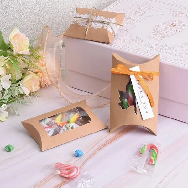Looking for something distinctive to showcase your product so the customers can see the color and shape of what they are buying? Then pillow boxes with window are just the best choice for you. The pillow shaped boxes bulge up like fluffy pillows to give the items placed inside better space. They are prepared in several designs, materials, and customized sizes and shapes. They are perfect for numerous events where giveaways are given, like birthday and wedding celebrations.